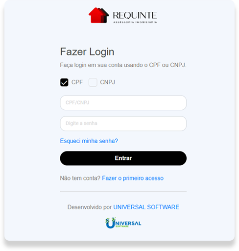 Locatários e Locadores poderão acessar a área do cliente clicando no Link: cliente.portalunsoft.com.br/requinte.