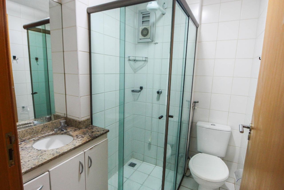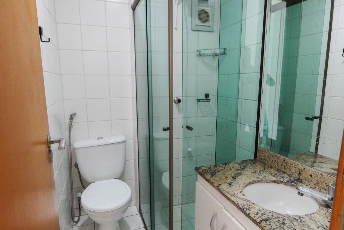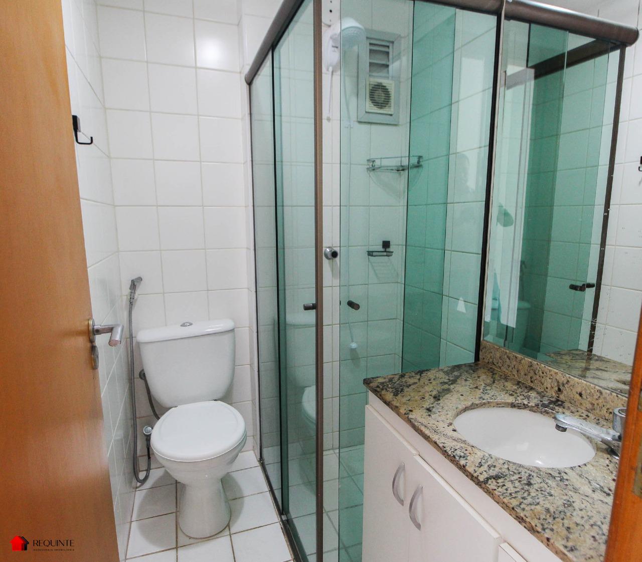 * Banheiro social e suíte com armários e box em blindes,