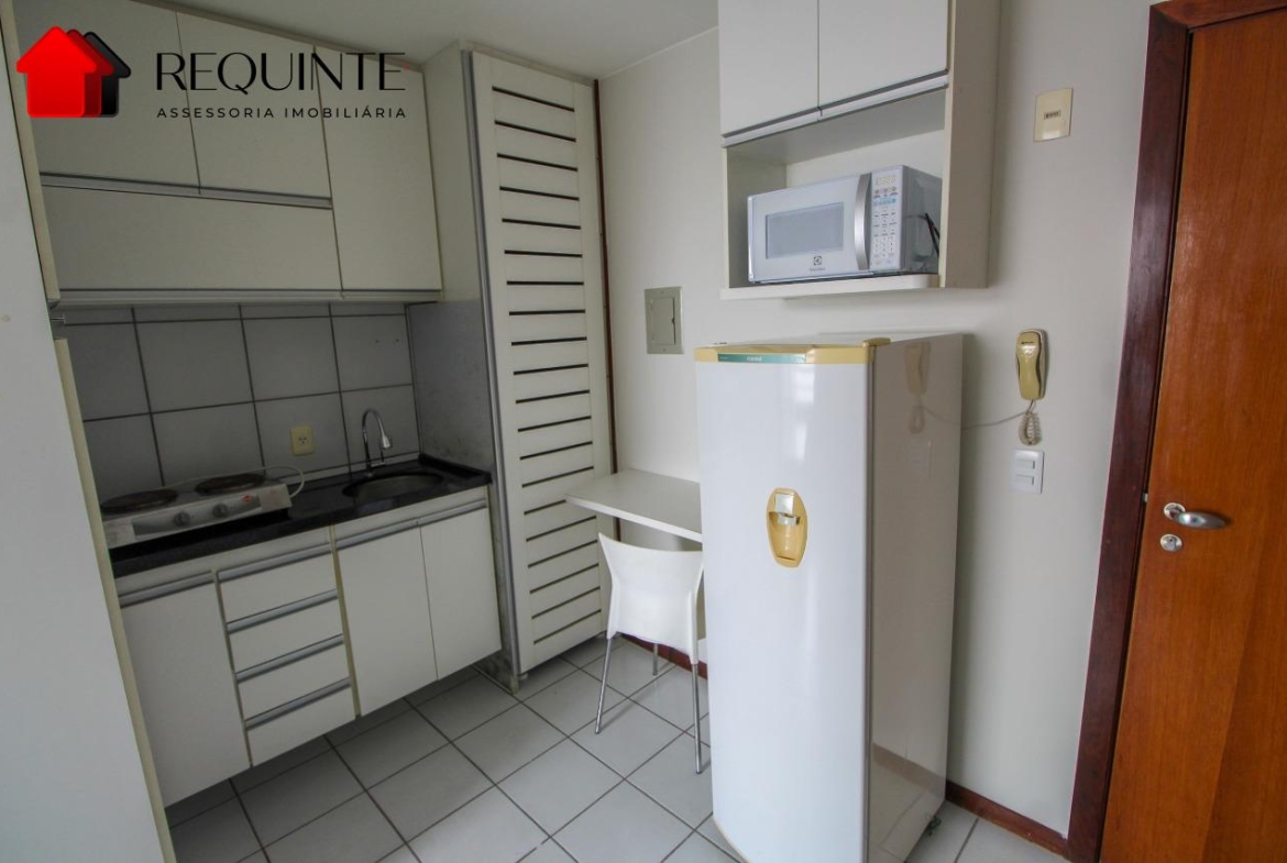 * Cozinha planejada com armários, geladeira, micro-ondas,